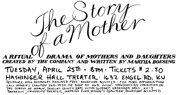 "Women's Work", an evening of poetry, music and dance by and about women. |