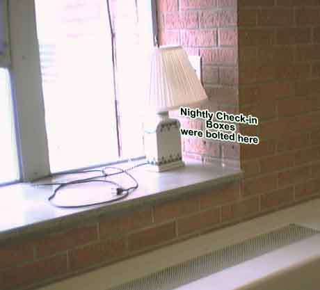 file box anchored by the corner window in each floor lobby. The boxes are gone, but