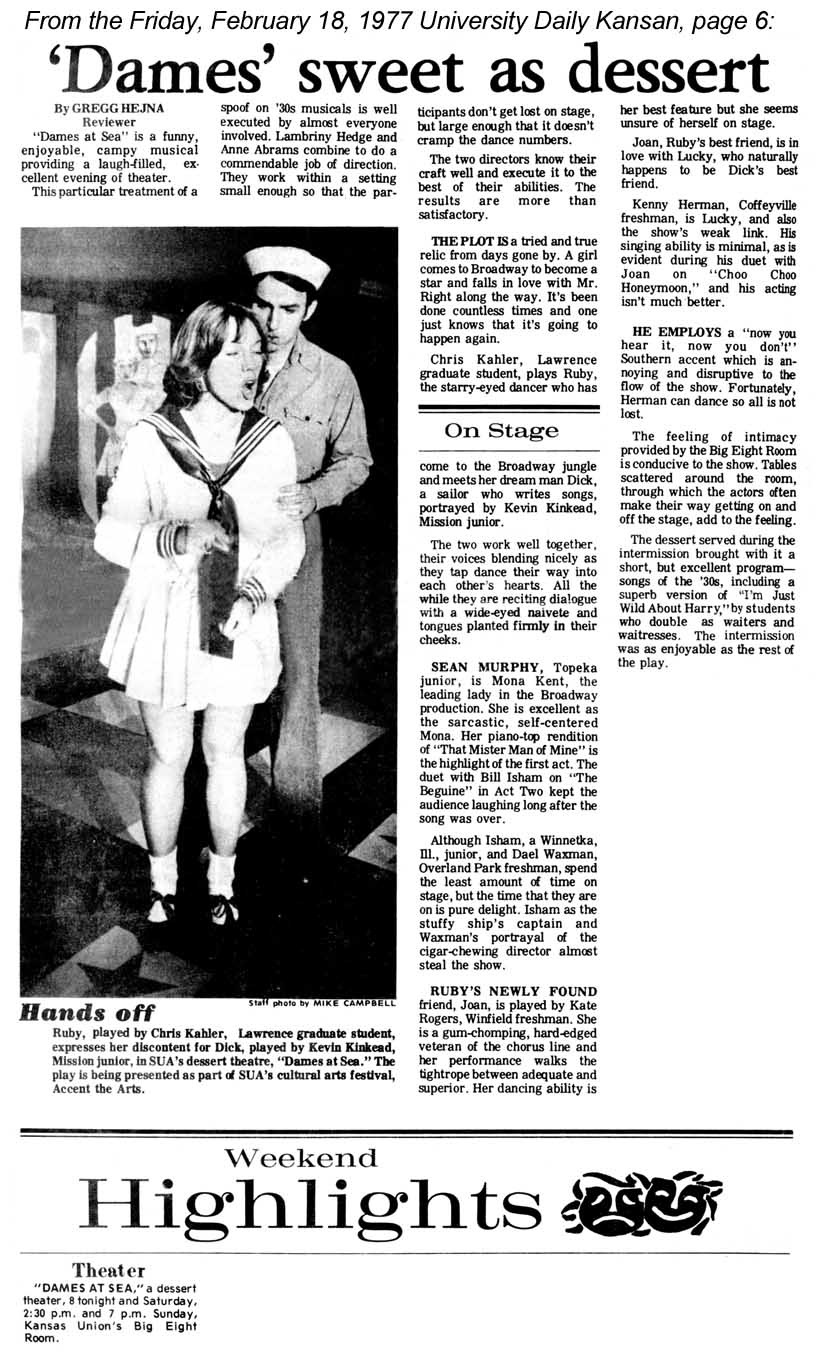March,'74? | Hashinger entry in Rock Chalk Revue wins honors. | |